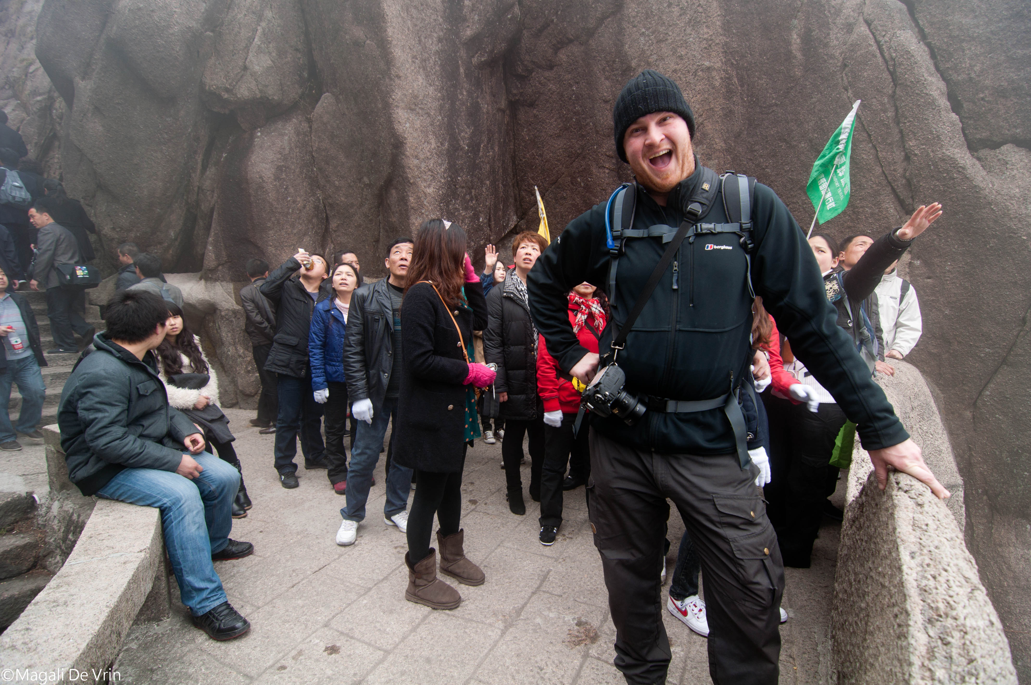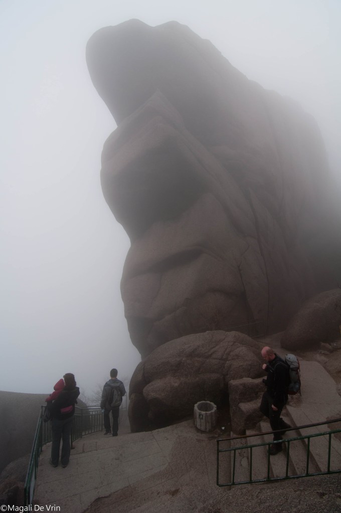 The next day, the weather had completely changed from clear blue skies and sun to nothing else but mist, and because it was Saturday already, we were surrounded by Chinese tourists and their megaphone-carrying guide. That really ruined it for me. You’re walking on this amazing path, in between huge mountains, everything is serene, quiet…until a loud voice breaks that silence and packs of Chinese tourists start to laugh or spit, or start staring and pointing at you!