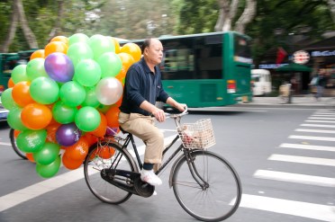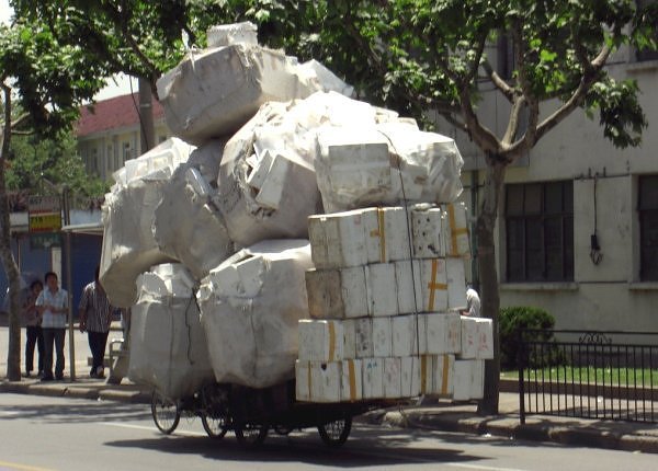 Everyone who’s ever been in Asia, knows that Asian traffic is the equivalent of chaos. Traffic consists of pedestrians, bicycles, scooters, electric bikes, motorcycles, tuk tuk’s, taxi’s, buses, trucks and everything in between. And by “everything in between”, I literally mean “everything”. A lot of bikes carry ‘trailers’ with massive loads of whatever you can imagine: chairs, cardboard, fruit, plants, shoes and yes, even fish!
